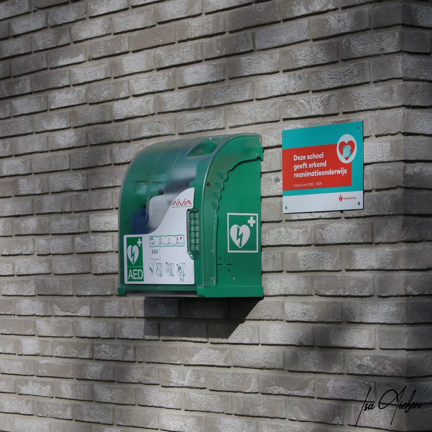 Om onze inspanningen nog verder te versterken, hebben we tijdens een actie op de wintermarkt, geld ingezameld voor een AED. Deze AED, die we nu trots aan de voorkant van ons schoolgebouw hebben geplaatst, stelt ons in staat om nog sneller hulp te bieden bij noodsituaties in onze wijk. Met deze waardevolle toevoeging kunnen we onze omgeving nog beter ondersteunen en klaarstaan als het erop aankomt.