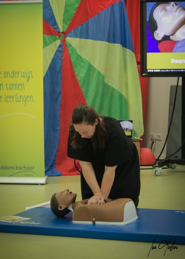 Dit jaar zijn we vol enthousiasme gestart met het geven van reanimatietrainingen aan onze vso-leerlingen. Door hen te leren hoe ze levens kunnen redden, geven we ze niet alleen praktische vaardigheden, maar ook de kracht om écht een verschil te maken. Ook onze leerkrachten, die speciaal getraind zijn, staan klaar om in actie te komen wanneer dat nodig is. Ze geven niet alleen de reanimatielessen, maar zijn ook direct inzetbaar bij reanimatiemeldingen in de buurt. Want we weten allemaal: de eerste zes minuten zijn cruciaal bij een circulatiestilstand.
